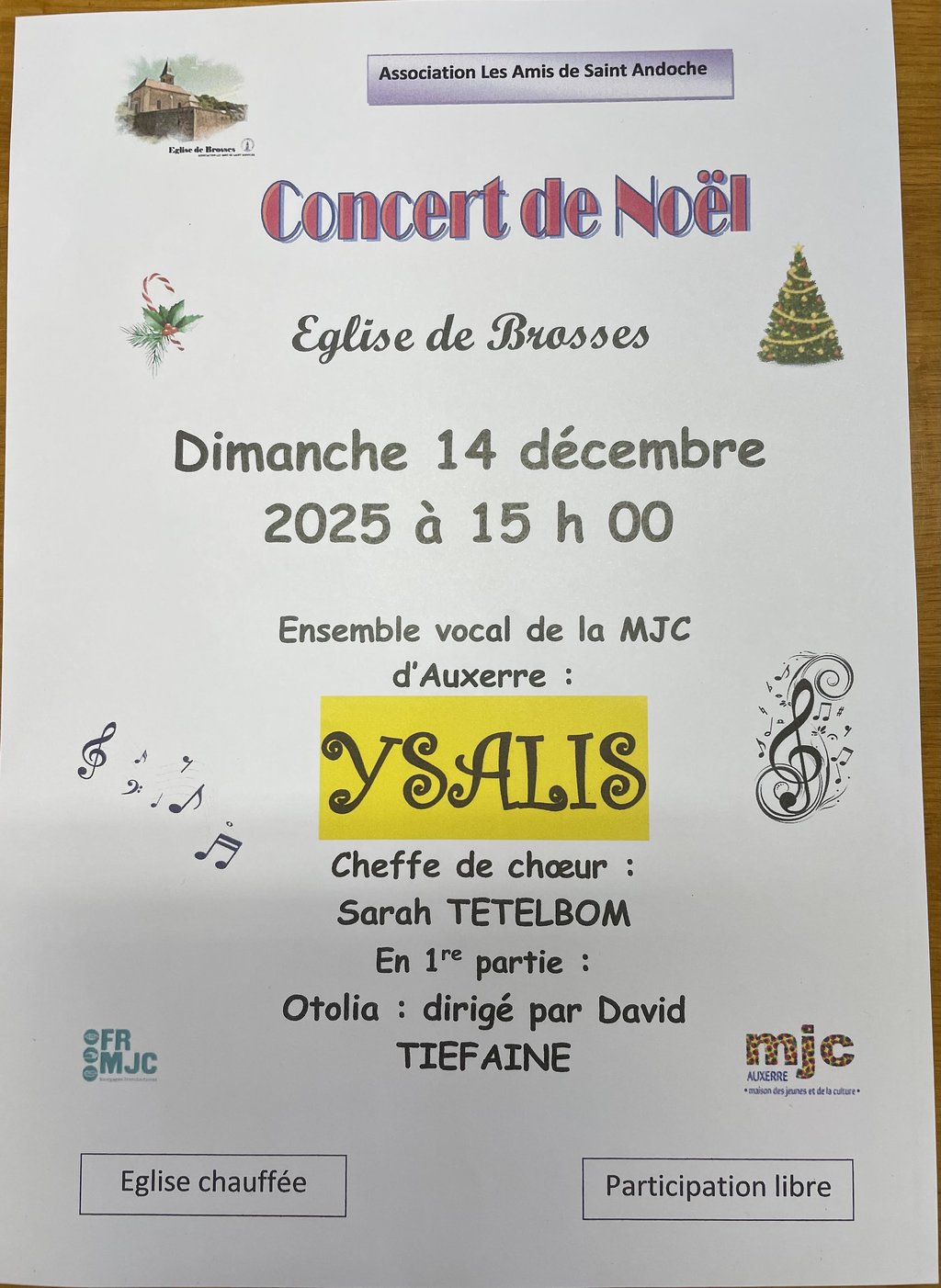 Concert de Noël avec l'ensemblr vocal de la MJC d'Auxerre - YSALIS- cheffe de choeur Sarah TETELBOM - en 1ere partie : Otolia : dirigé par David TIEFAINE - participation libre - église chaufée